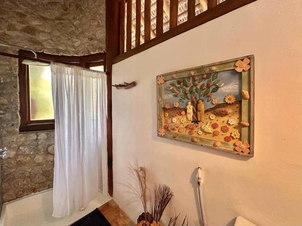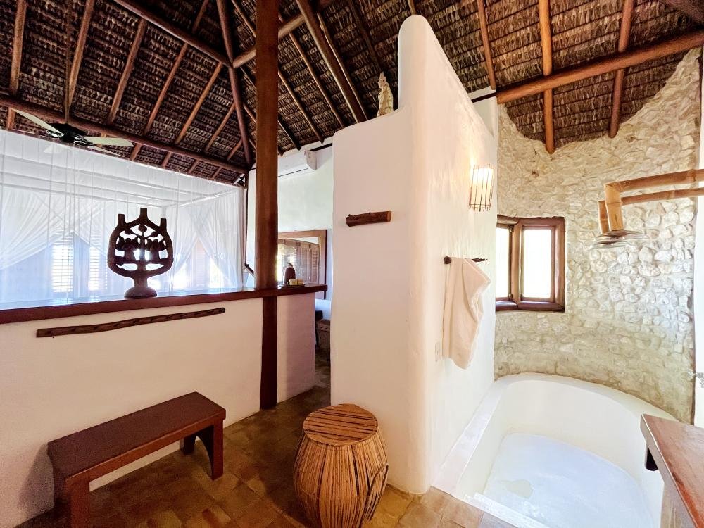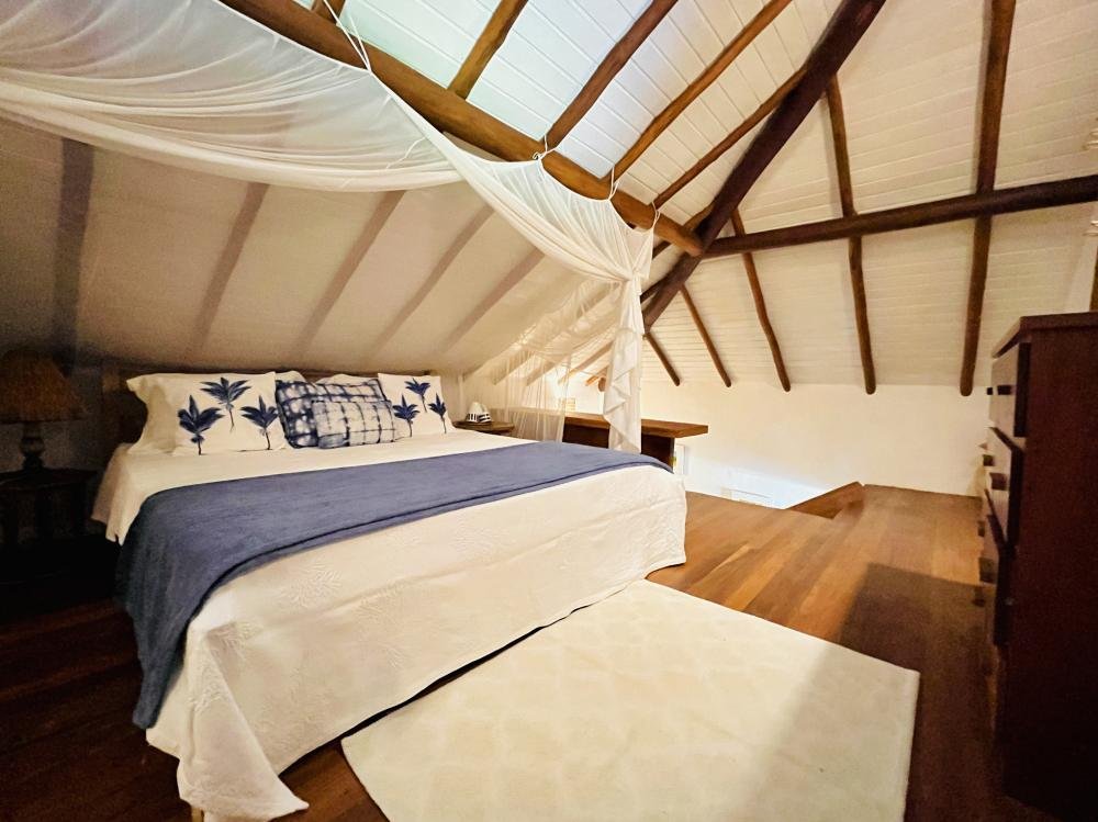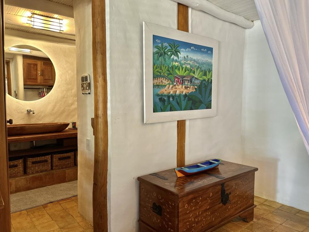 A suíte master, com um banheiro que mais parece um SPA, promete relaxamento total. A suíte no térreo acolhe com conforto e praticidade, enquanto a suíte no mezanino encanta por proporcionar a sensação de estar hospedadoem uma casa na árvore, combinando conforto com a autenticidade de uma verdadeira aventura tropical.